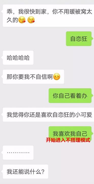 这个时候初夏老师选择放弃,这就像所有人都在说不要和女人讲理,你和她挣是挣不到什么的,还不如让她一直主动,你只负责享受就好。并且之前的聊天能量有一点高,现在需要进行收缩话题。让自己情绪降低。引起女生的主动,相信很多同学们都有遇到过你喜欢的女孩子就喜欢和你抬杠。并且只抬杠,我劝同学们,回头是岸不要争,强势就好。