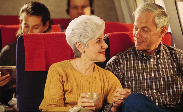 坐上飞机后,母亲依偎在父亲身上,两个人的表情也从紧张开始变得有点兴奋,父亲戴着老花镜手里拿着笔写下了人生的第一篇日记。