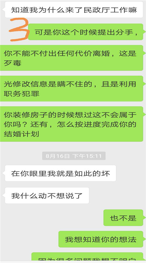 后来快到结婚之时,他提出分手,原因是他准备炒股赚钱,把钱给他老婆然后顺利离婚,之后利用工作之便抹掉婚姻信息以初婚状态跟我结婚。